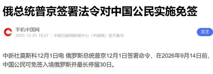 要知道普京这步棋,是对等回应,就在2025年9月,中国主动宣布对俄罗斯游客免签1年,俄罗斯这一回算是礼尚往来。